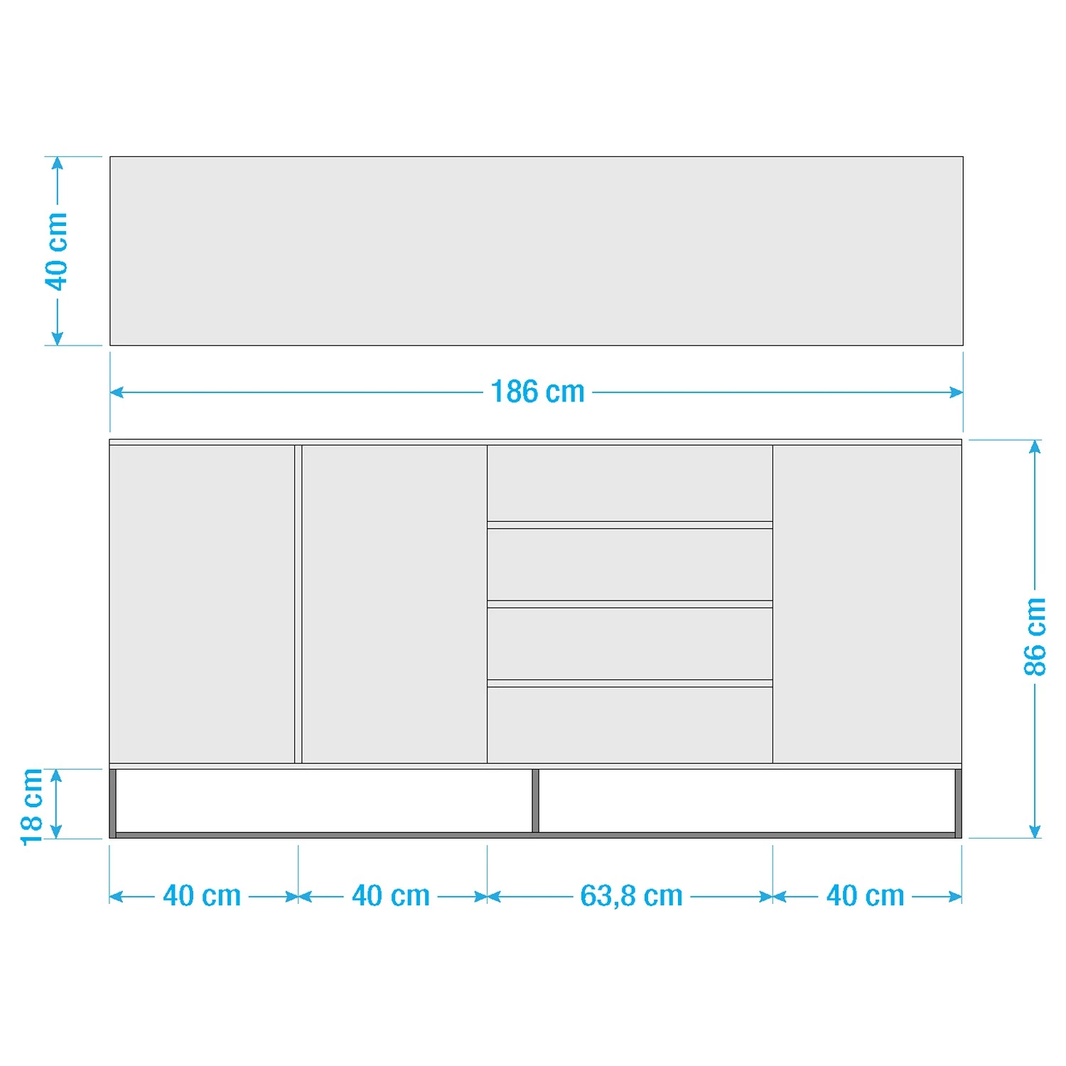 - Largeur des tiroirs : 63,8 cm