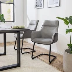 Chaises cantilever Amalia II (lot de 2) – Microfibre / Acier – Anthracite / Noir