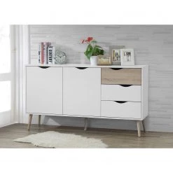 Naturoo Buffet Doora – Partiellement en chêne à nœuds massif – Chêne à nœuds Bianco / Graphite