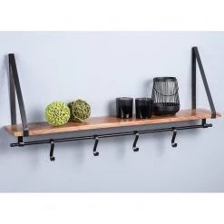 Red Living Étagère Mello III – Acacia massif – Acacia naturel / Noir – Largeur : 35 cm