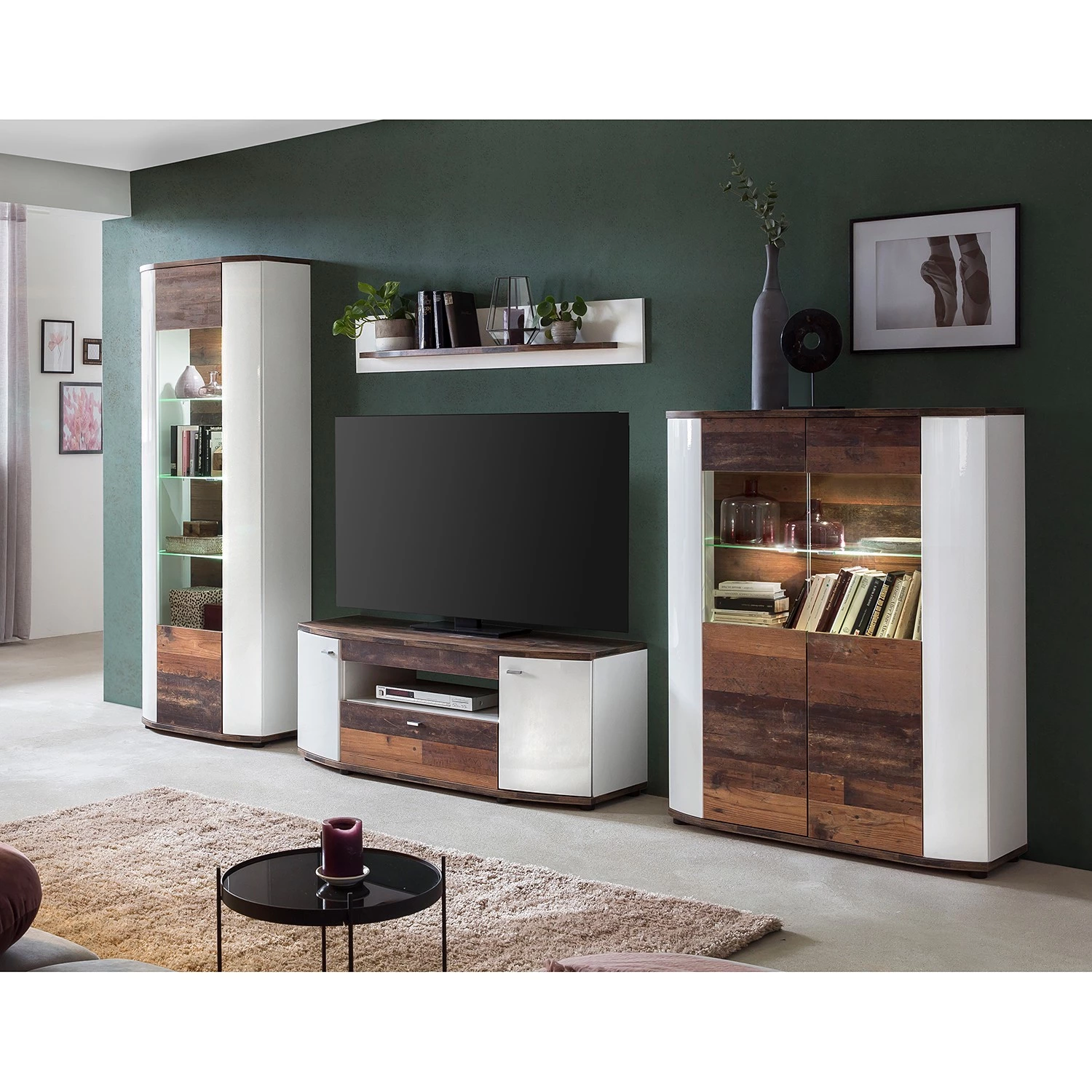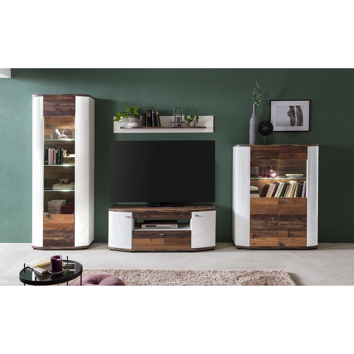 - Blanc brillant / Imitation bois recyclé