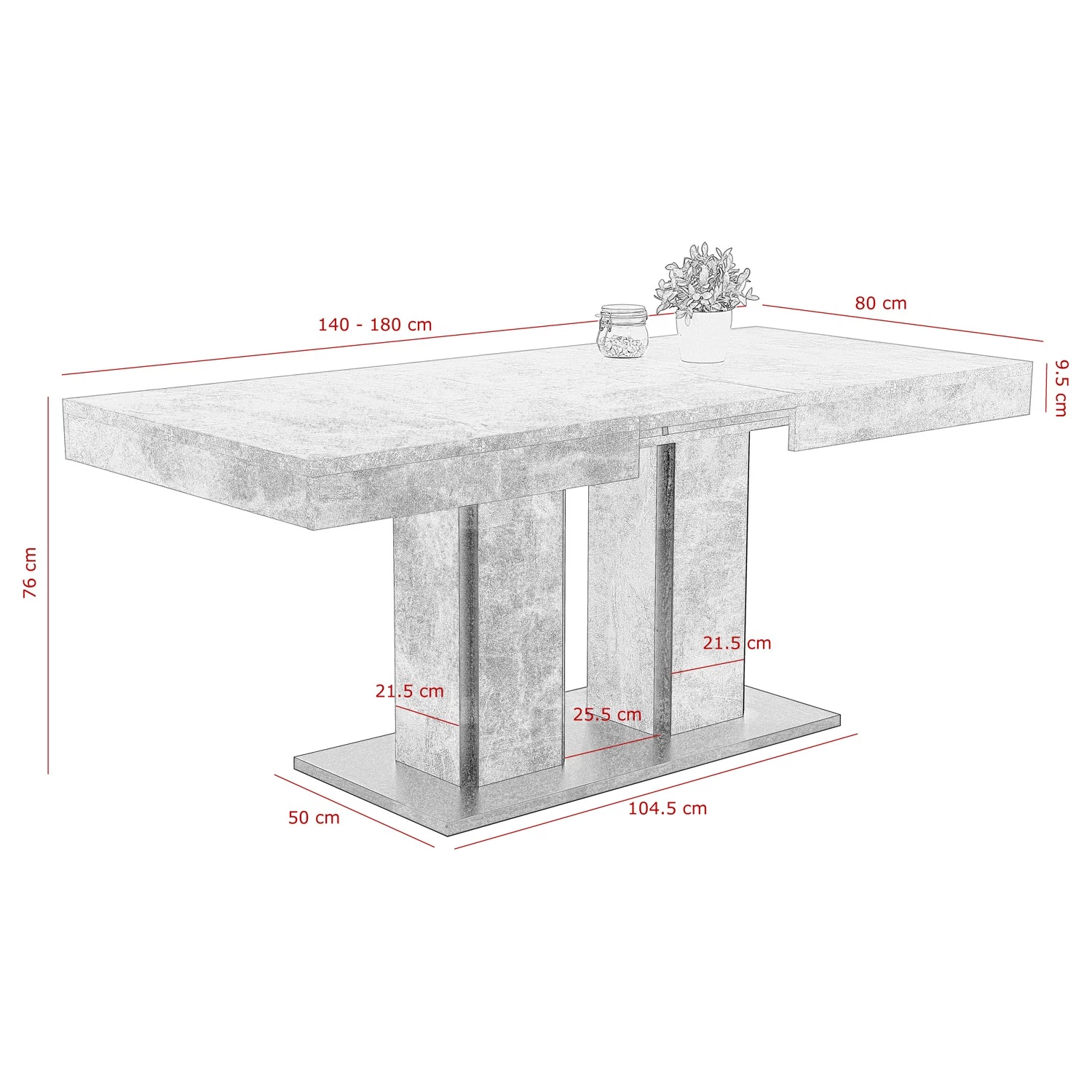 - Plateau de table et pied : imitation béton