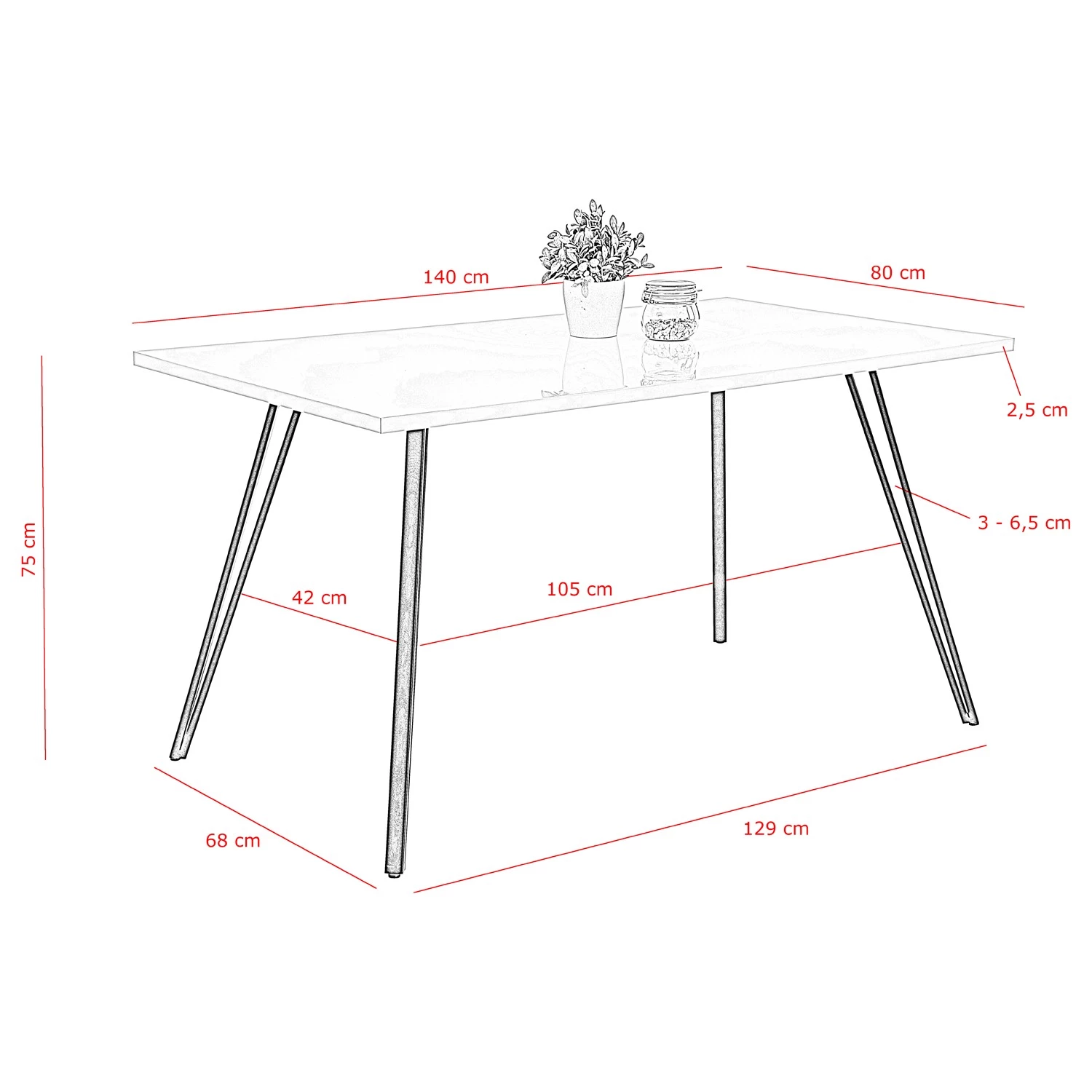- Hauteur du bord inférieur du cadre de table : 74 cm