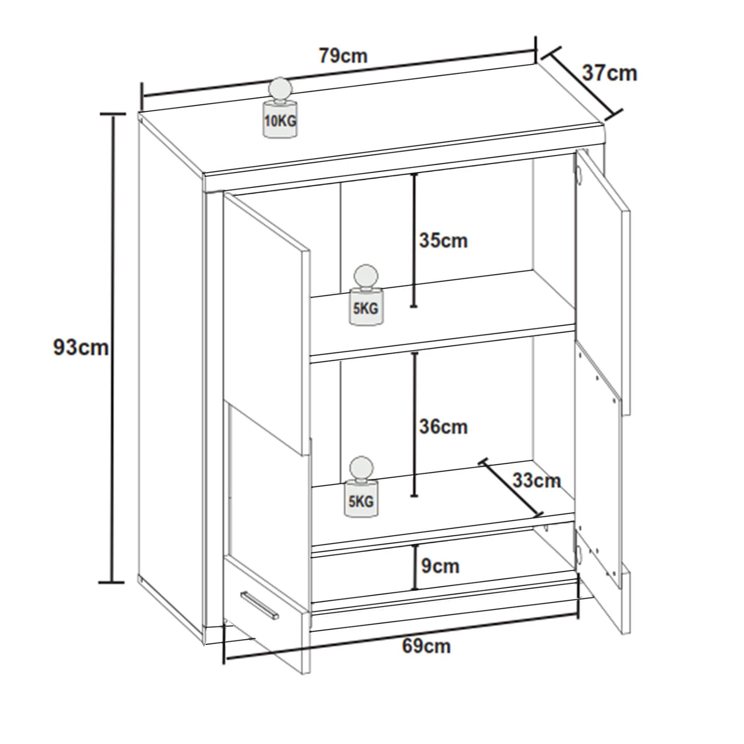 - Charge maximale des étagères : 5 kg