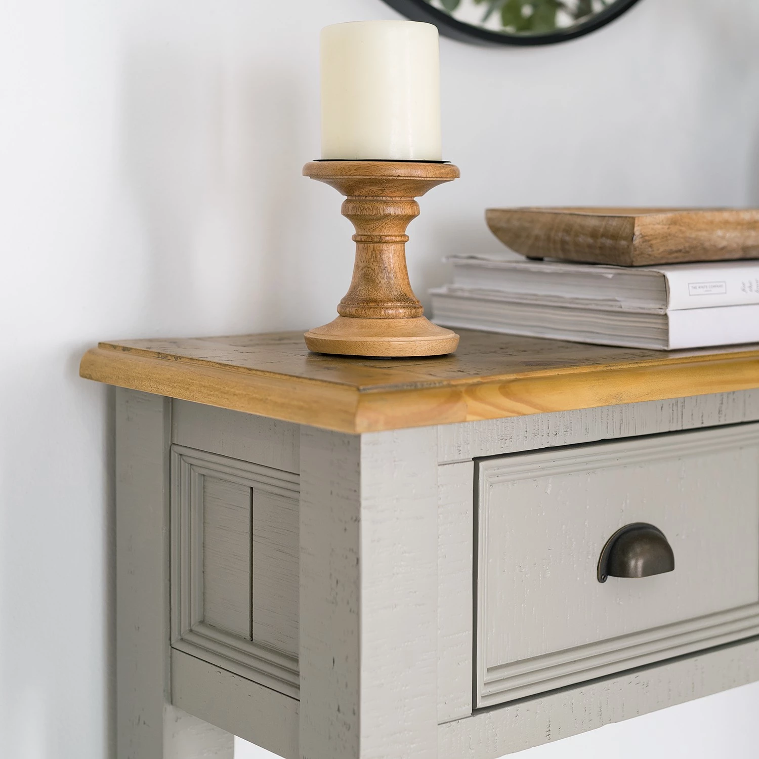 - Plateau supérieur : pin massif teinté