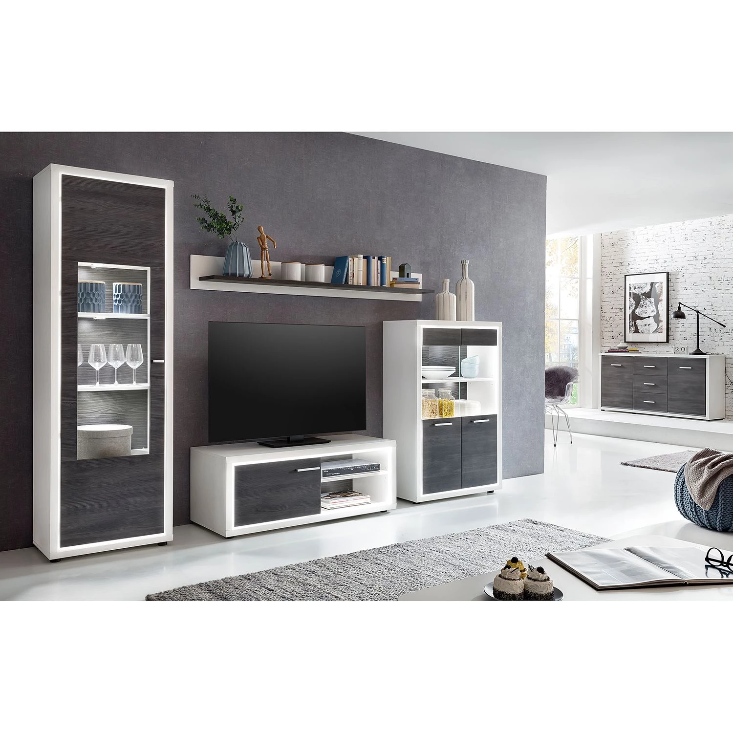 - Surface de rangement : imitation pin anthracite