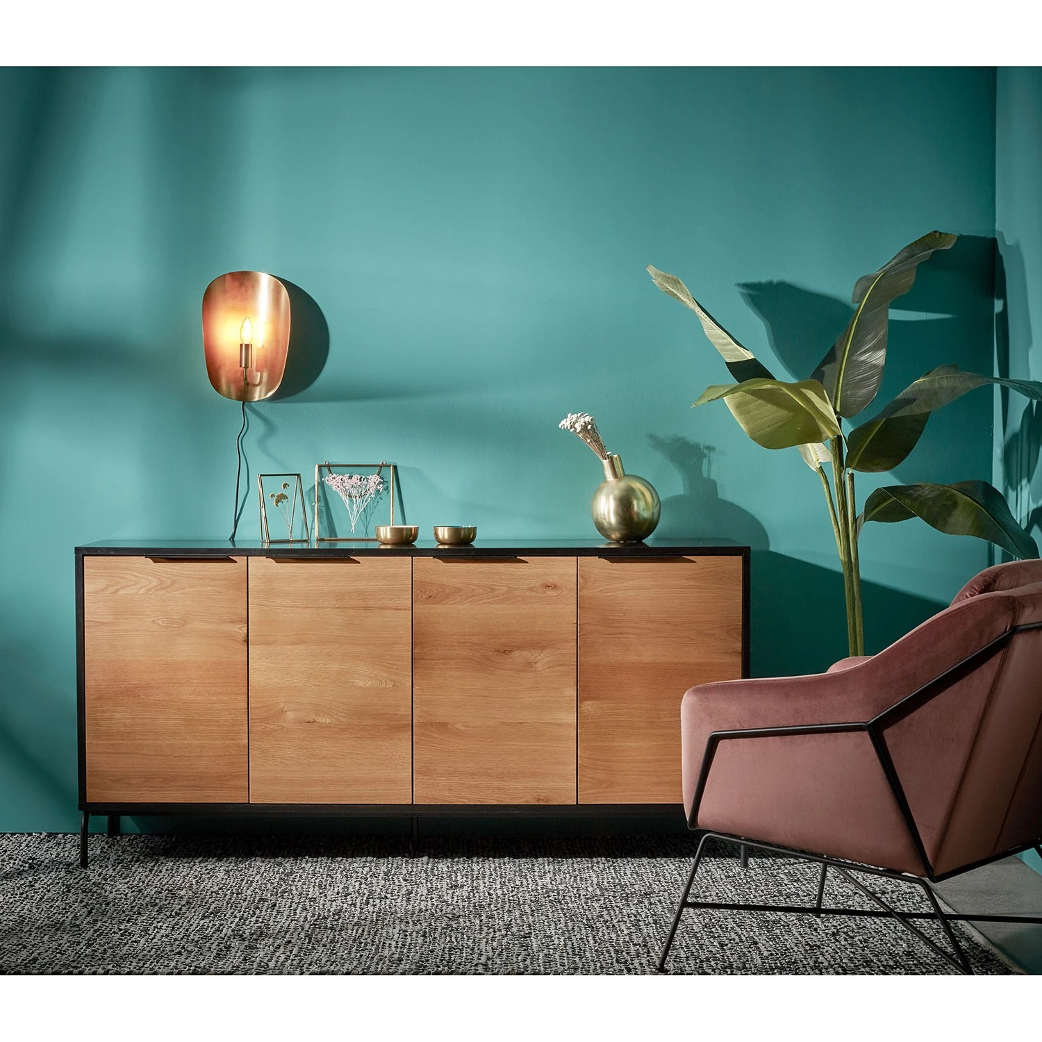- Pieds et poignées : métal verni