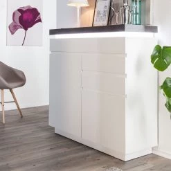 Fredriks Commode Roble III – éclairage inclus – Blanc mat / Placage en chêne sauvage massif