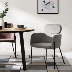 Mørteens Chaise à accoudoirs Hallund II – Velours / Hévéa massif – Noir – Gris