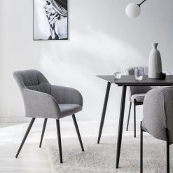 Mørteens Chaise à accoudoirs Senon – Tissu / Acier – Gris chiné / Noir