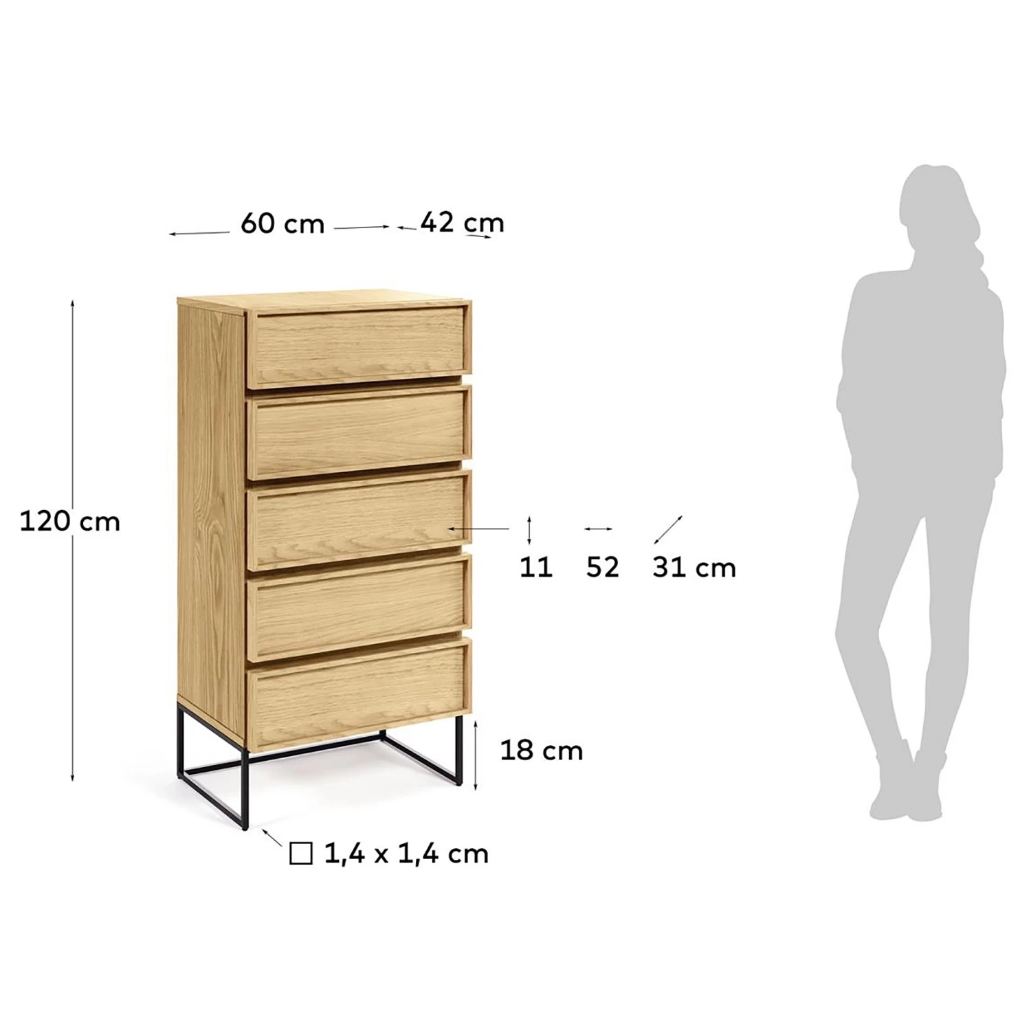 - Dimensions intérieures du tiroir : 52 x 11 x 31 cm (L x H x P)