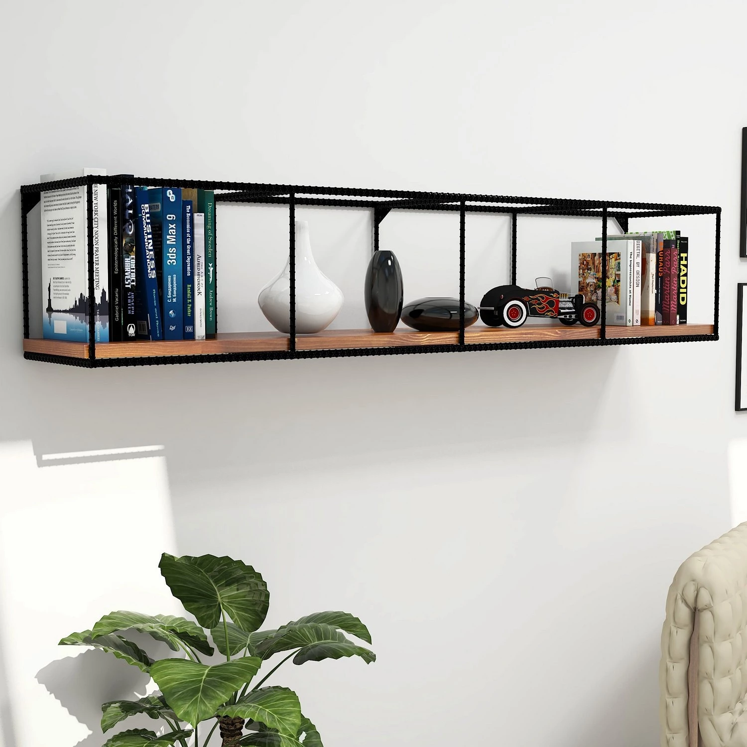 - Étagère : pin massif verni